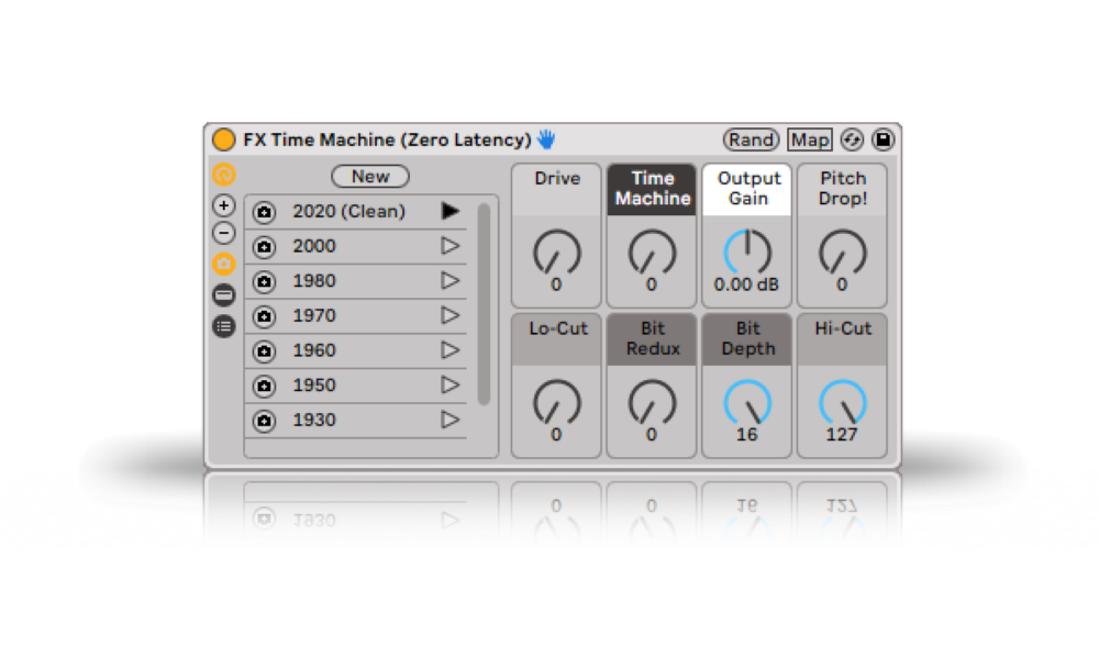The Time Machine Audio Effect Rack utilizes different Filter Settings to imitate the lo-fi Sound of the past musical Decades, using only native Ableton Live Devices. You can easily use this Audio Effect Rack to recreate the currently very popular Retro Sound that makes plug-ins like iZotope Vinyl or Thenatan’s Vybz a Go-To Tool for Modern Producers.