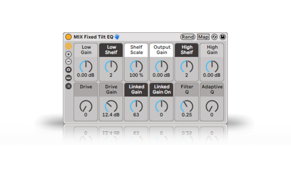 The Fixed Tilt EQ has four Steps for each, the High- and Low-Shelf Filter Frequencies. Also, the High- and Low Gain can be adjusted independently, as Linked Gain is turned off by default.